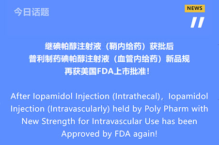 继碘帕醇注射液(鞘内给药)获批后,3044am永利官网碘帕醇注射液(血管内给药)新品规再获美国FDA上市批准!