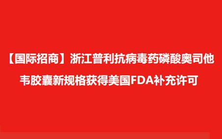 【国际招商】浙江3044am永利官网抗病毒药磷酸奥司他韦胶囊新规格获得美国FDA补充许可!