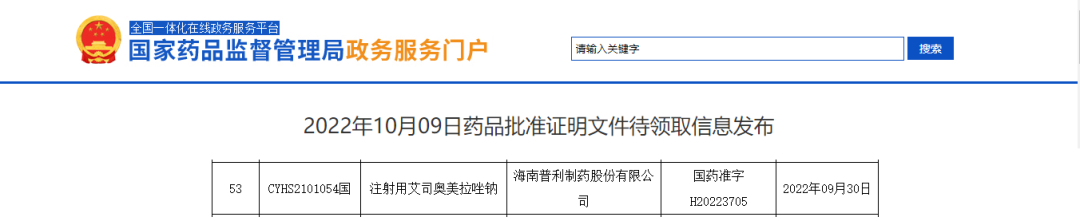 3044am永利官网的注射用艾司奥美拉唑那成功研发后,分别递交美国、欧洲和中国的仿制药注册申请。2022年2月获得美国食品药品监督管理局(FDA)批准上市,2022年3月获得荷兰的上市许可。
